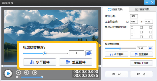 另外,“画面自由变换”功能也可派上用场。点击此功能后,在弹出框中选择“视频旋转角度”,既可以拖动滑杆来调整,也能够点击旋转按钮操作,使画面达到理想的端正状态。